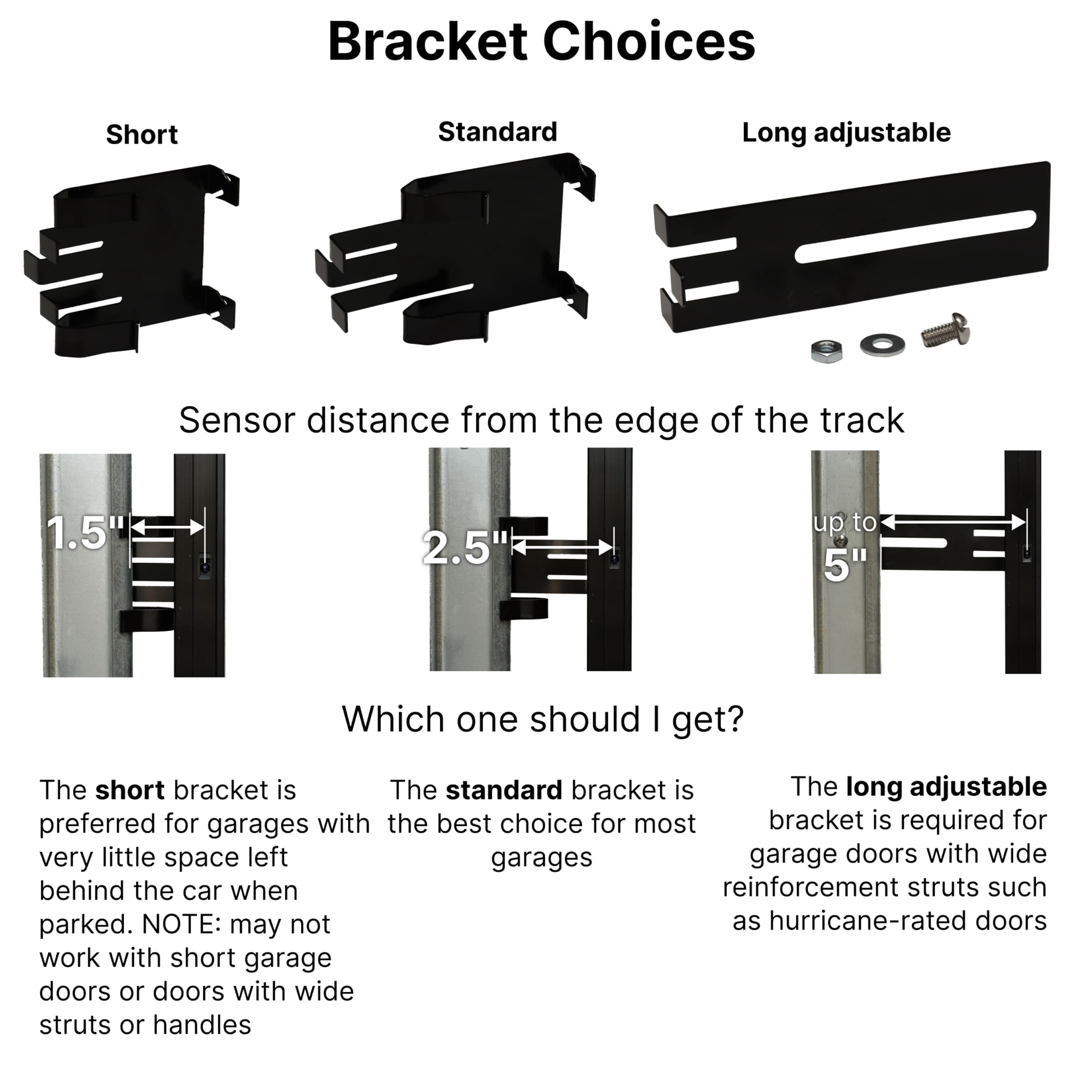 Ideal for standard installations, the Regular Bracket positions your Infinity Shield sensor 2.5 inches from the edge of the garage door track.