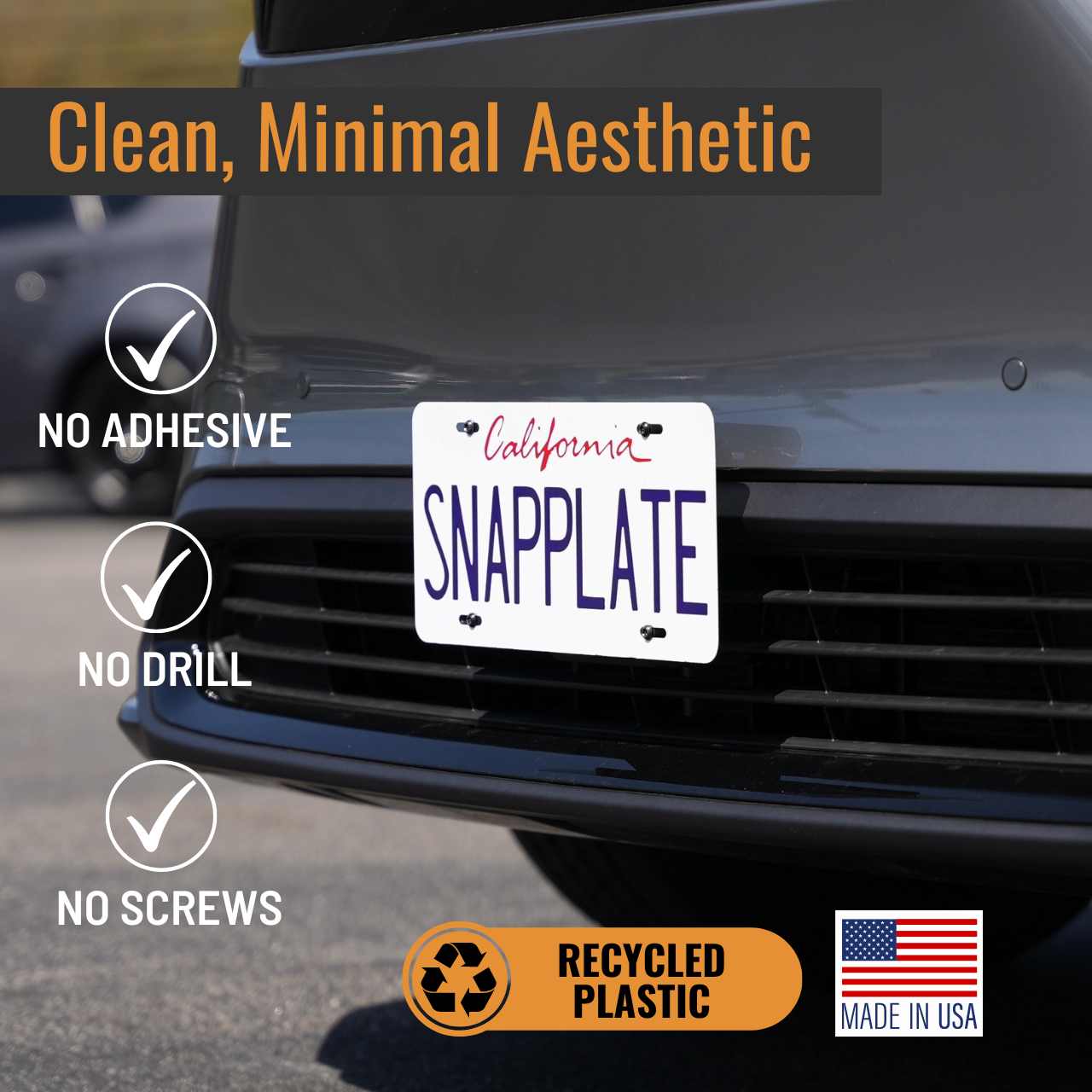 SnapPlate blends seamlessly with the front end of your vehicle and leaves nothing behind when removed.