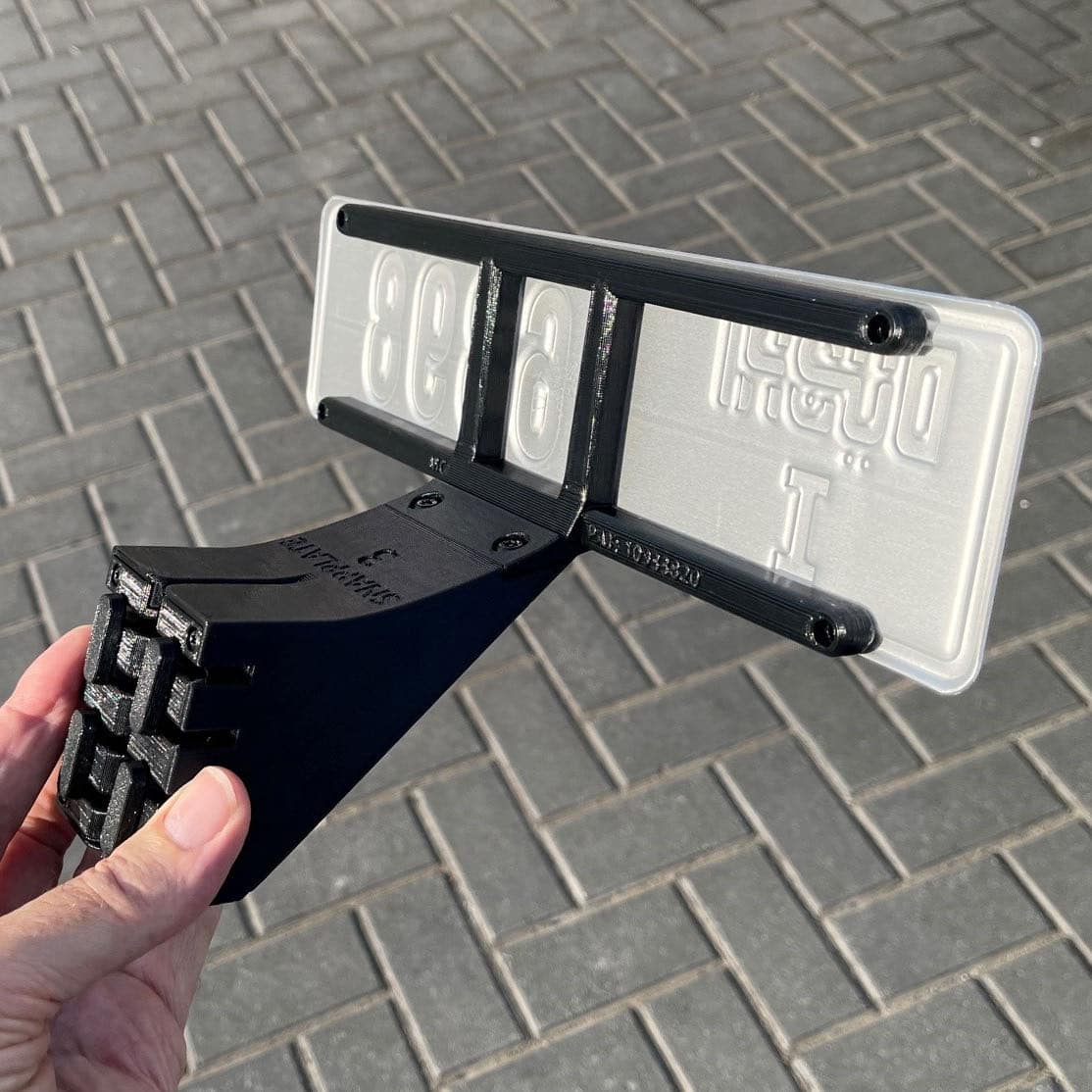 This plate mount is designed for a variety of European and Asian license plates including Monaco and the United Arab Emirates. It has holes at 236 mm x 66 mm that can be used with the included screws and holes drilled into the plate. However, many customers choose to skip the screws and use double-sided tape to attach the plate. We recommend 3M 1/4″ tape or similar.