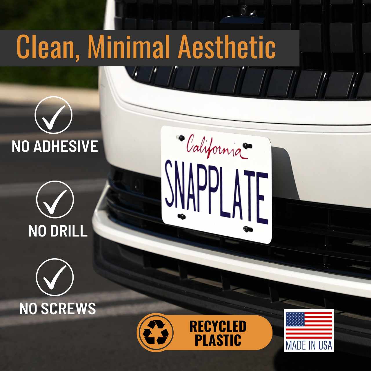 SnapPlate blends seamlessly with the front end of your vehicle and leaves nothing behind when removed.